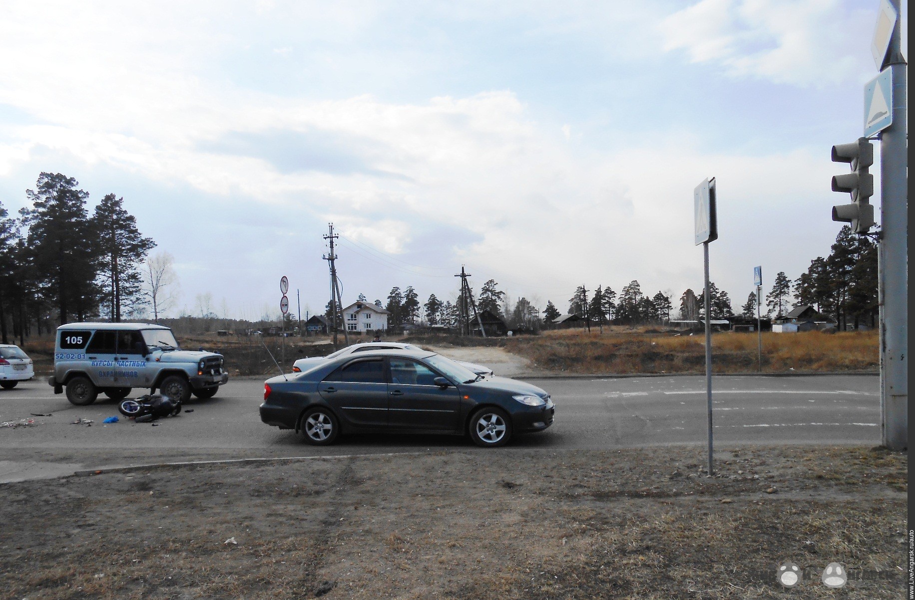 23 апреля около 18.00 на перекрестке улицы Алешина и Ангарского проспекта произошло столкновение Тойоты Камри с мопедом. Удар пришелся в заднюю часть Тойоты, которая остановилась на запрещающийся сигнал светофора. Сильных травм в ДТП мопедист не получил, хоть и управлял без шлема, но его техника навряд ли теперь будет ездить по дорогам города без серьезного ремонта.