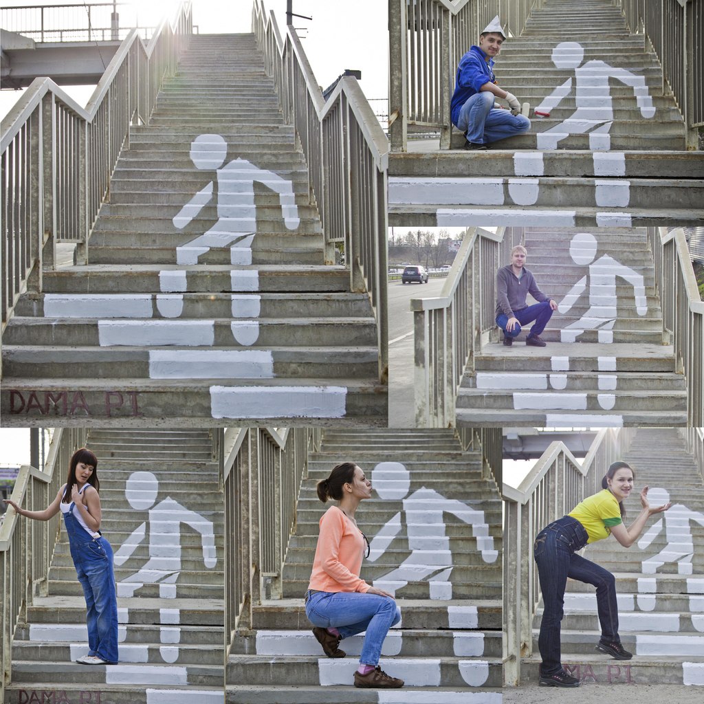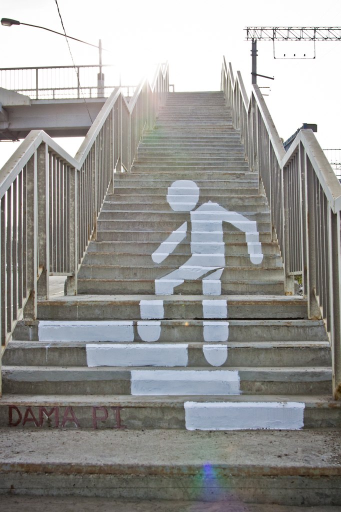 Необычная раскраска появилась у надземного пешеходного перехода в Иркутске. Молодые активные иркутяне в майские праздники решили украсить одну из лестниц пешеходного перехода у Академического моста в Свердловском районе областного центра. Что из этого вышло, смотрите на фотографиях ниже: