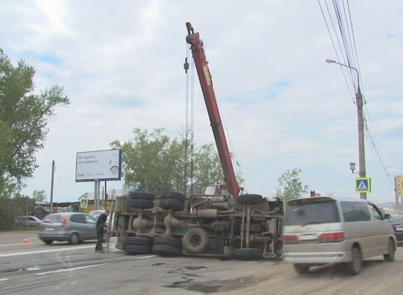 Бетономешалка перевернулась в Иркутске