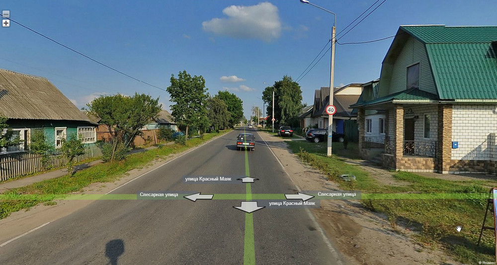 Небольшая улица Красный Маяк находится вне городской черты. На ней расположены загородные дома, движение одностороннее. Здесь действует ограничение скорости 40 км/ч.
