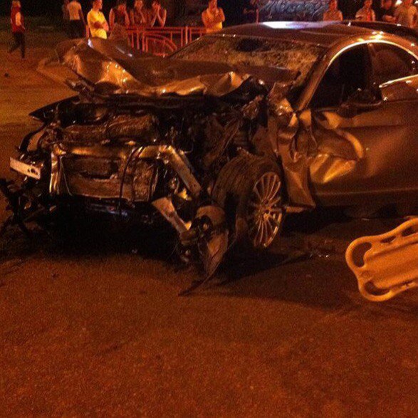 на скорости врезалась в стоящий на светофоре Toyota Highlander, из-за чего тот столкнулся с Toyota Allion и Toyota Cresta.