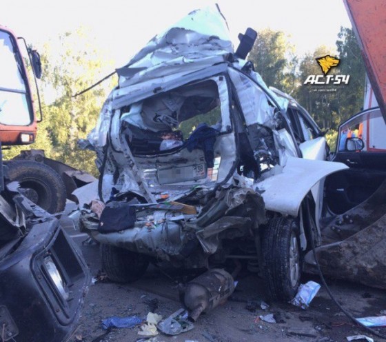 По предварительной информации полиции, ДТП произошло во второй половине дня на трассе в Мошковском районе (в паре десятков километров от Новосибирска). Столкнулись грузовики МАЗ, Scaniа и Камаз, микроавтобус Toyota Voxy и легковой Volvo.