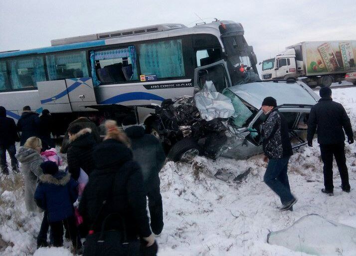 Серьезная дорожная аварии произошла в 9:00 28 ноября на трассе «Сибирь» в районе поселка Мальта Усольского района Иркутской области. По предварительной информации, водитель «Тойоты» не справился с управлением при совершении обгона, после чего врезался в автобус, который двигался по встречной полосе.