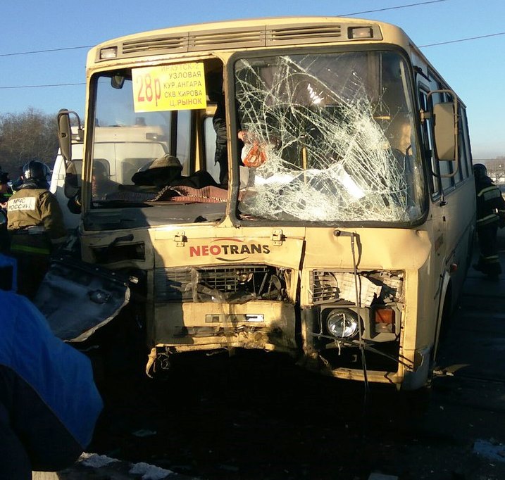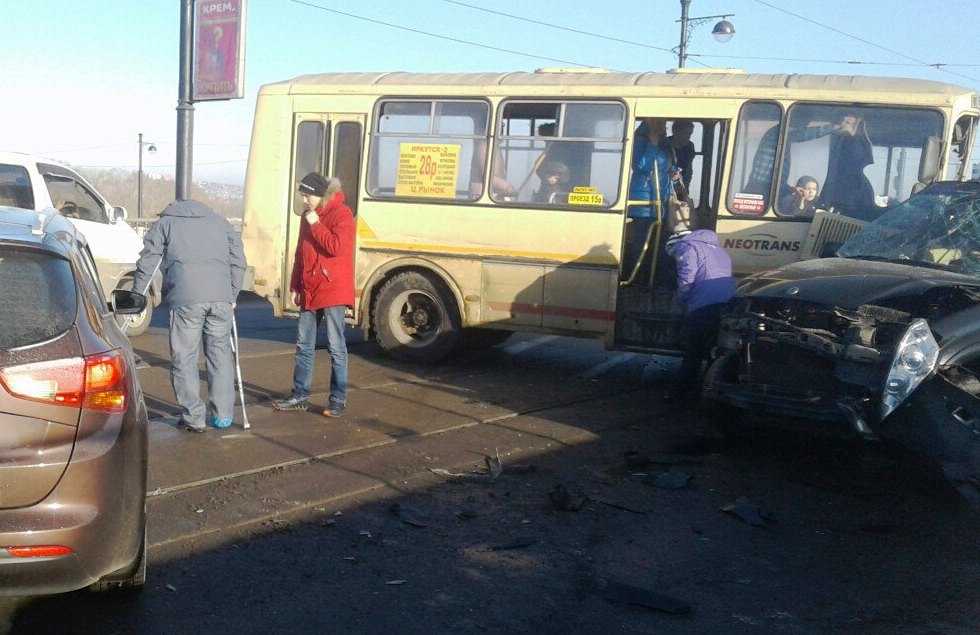 Сегодня около 14.40 часов на Глазковском мосту г. Иркутска произошло столкновение внедорожника Ssang Yong Kyron с автобусом «ПАЗ», следовавшего по маршруту «28Р».