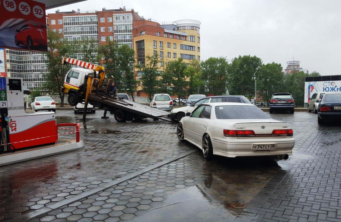Около восьми машин в буквальном смысле отравили на одной из иркутских заправок ранним утром 4 июля. И виной этому стал сильный ливень, который не прекращался в городе всю ночь. По предварительной информации вода с огромных луж каким-то образом попала в резервуар с бензином, а затем и в бак к автомобилистам.