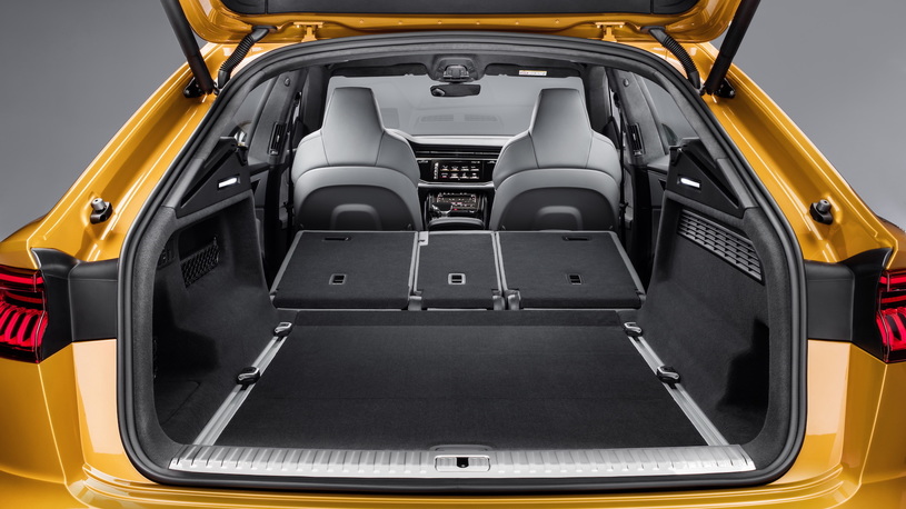 Несмотря на приземистый силуэт, Audi Q8 располагает просторным багажным отделением объемом 605 л в походном состоянии и 1 755 л - при сложенных сиденьях второго ряда. Электропривод крыши багажника будет присутствовать по умолчанию, а за доплату предложат моторизованную шторку.