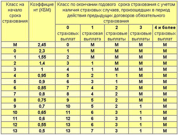В первый год сотрудничества страховщик присваивает автолюбителю 3 класс, при котором значение КБМ равно 1. В последующие годы класс или повышается, снижая значение КБМ, или понижается, и тогда значение коэффициента увеличивается, делая полис дороже.