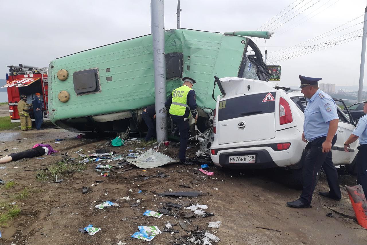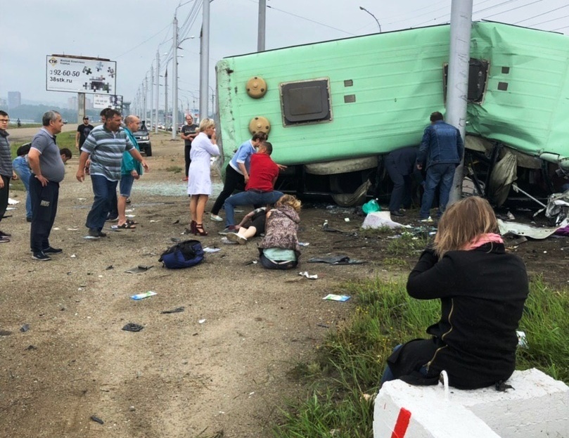- 12 человек пострадали в столкновении автобуса со столбом в Иркутске