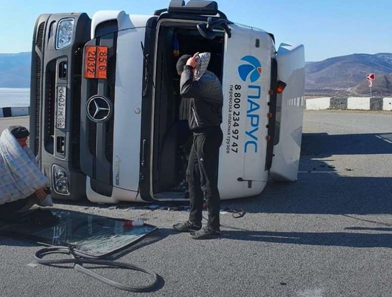 Фура с химикатами перевернулась на трассе в Култуке