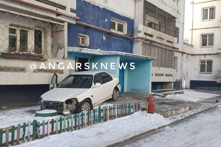 В Ангарске в 29-м микрорайоне автомобиль Honda Civic протаранил три припаркованных машины и въехал в подъезд. Инцидент произошел днем 17 декабря. В момент ДТП рядом с подъездом находился работник управляющий компании, он вовремя успел отскочить.