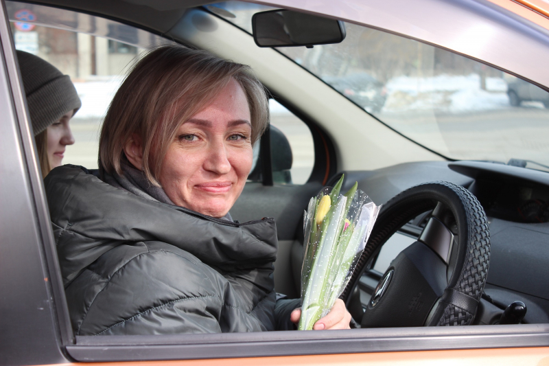 - Госавтоинспекторы и школьники поздравили женщин-водителей с Международным женским днём
