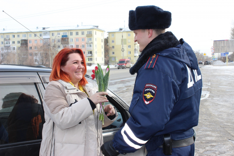- В Ангарске полицейский цветочный патруль поздравил женщин-водителей с Международным женским днём