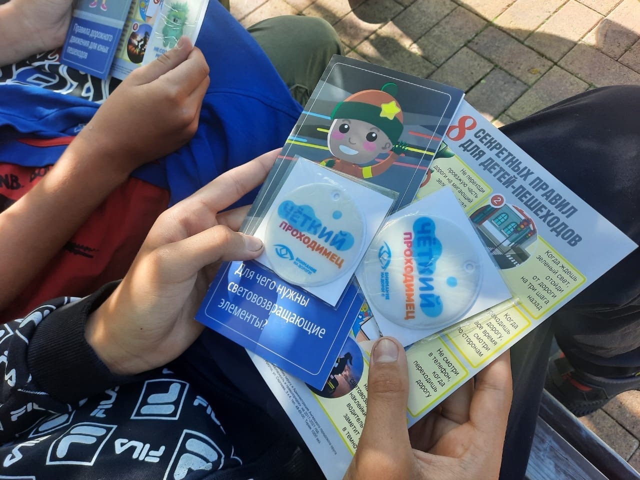 В ходе мероприятия полицейские вручали несовершеннолетним пешеходам световозвращающие элементы на одежду и в очередной раз напомнили о том, как нужно правильно переходить дорогу со средствами индивидуальной мобильности (с самокатами, велосипедами).
