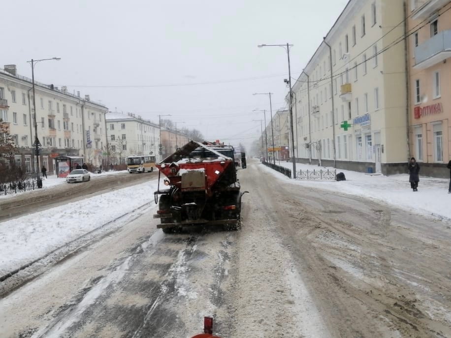 Проезжую часть посыпают противогололедными материалами, выполняют раздвижку снега. Чистят остановки общественного транспорта.
