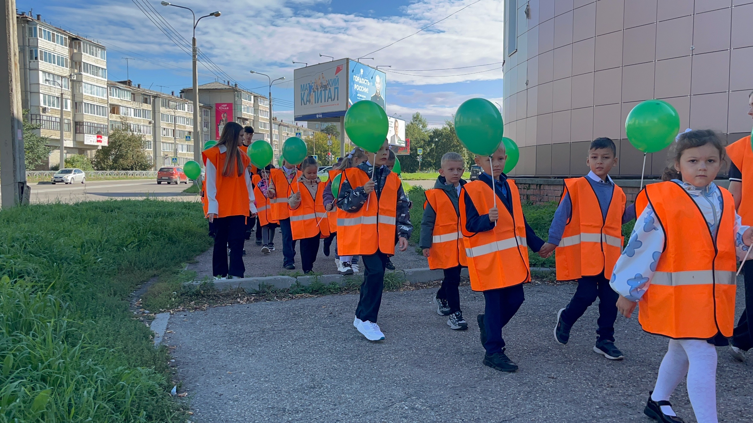 Госавтоинспекторами для учащихся трех первых классов школы №20 была проведена экскурсия к пешеходным переходам «Шагающий автобус». Ребята в ярких светоотражающих жилетах и с воздушными шарами зеленого цвета проследовали до ближайшего регулируемого и не регулируемого пешеходного перехода на улице Алешина.