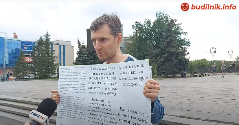 Житель города Орска Вильгельм Варкентин вышел в одиночный пикет против принудительной вакцинации.