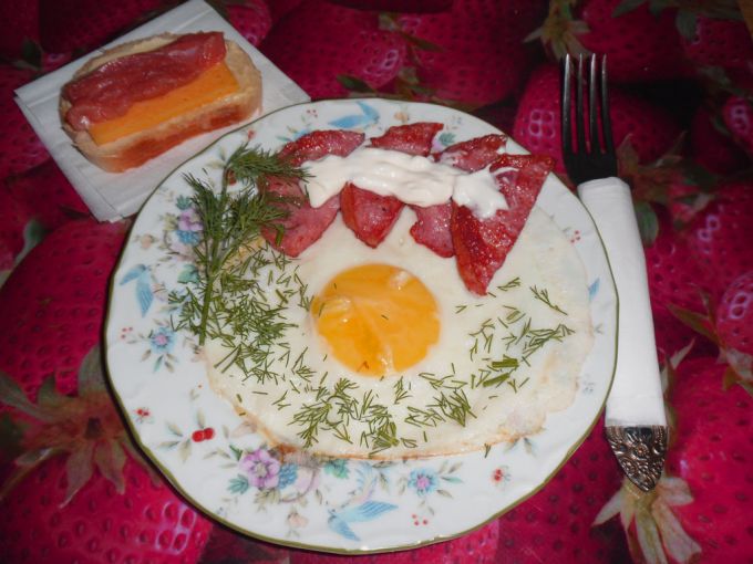 Извините, что почти съел свой обеденный завтрак. Понимаете какое дело... начал кушать, залез на ЖА... и вспомнил, точнее увидел что самое время для участия в конкурсе. Ну не жарить же ради такого дела еще одну яичницу. А запасной у меня не оказалось. Ну и реализм есть реализм. Никаких постановок, никаких обработок. Вот мое кредо! По крайней мере в данном туре конкурса