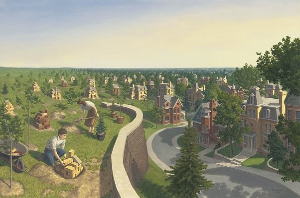 Роб Гонсалвес (Rob Gonsalves) – канадский художник и представитель жанра магического реализма. Идеи его картин основаны на действиях внешнего мира: это может быть партия в шахматы, разыгранная между ребенком и целым миром, или складывание ракушек на полу гостиной, которая постепенно становится берегом моря, и простые качели, что взмывают над повседневной улицей. Все в работах этого художника не то, чем кажется на первый взгляд. Роб Гонсалвес строитель иллюзий – его картины ведут нас из привычного мира в мир снов и волшебства, как бы говоря, что чудо возможно. Приятного просмотра