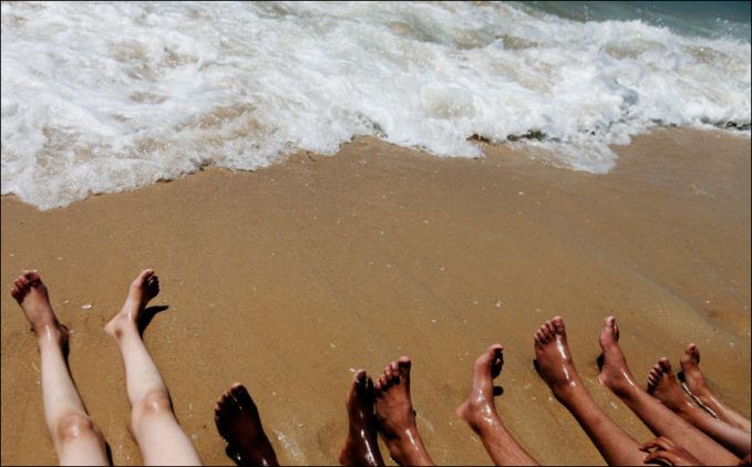 желтый от солнца и мочи. Тысячи людей барахтаются в море, как воробьи в