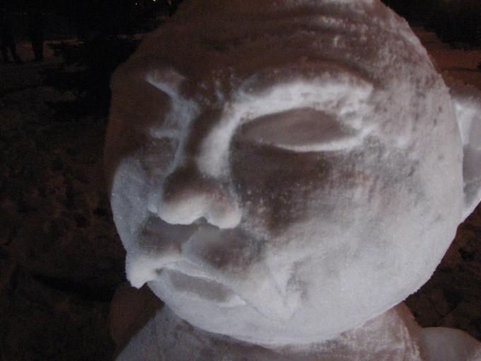 А в Норвегии существовало предание о том,что снеговиков опасно разглядывать поздним вечером из-за шторы.К тому же, дурным знаком считалось встретить снежную фигуру ночью:ее рекомендовалось обойти стороной.