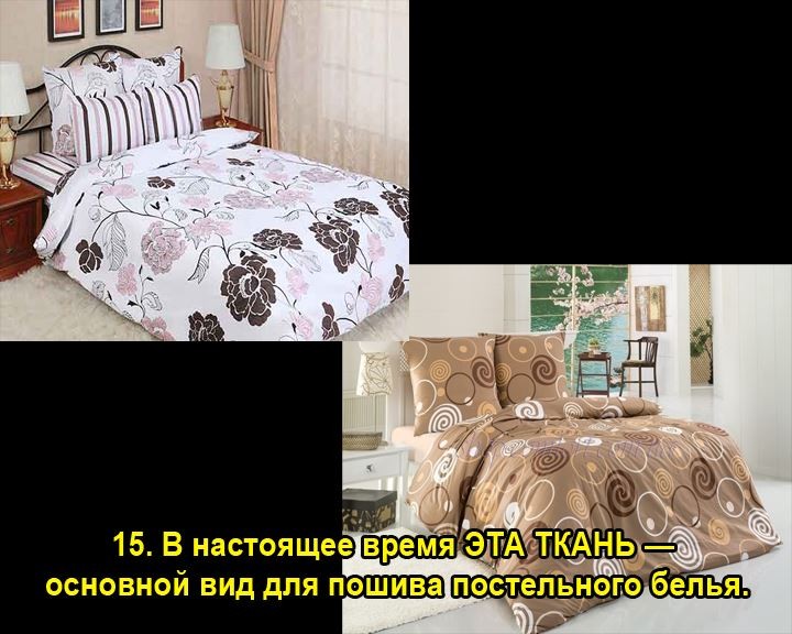 15. В настоящее время ЭТА ТКАНЬ — основной вид для пошива постельного белья. (см.картинку)