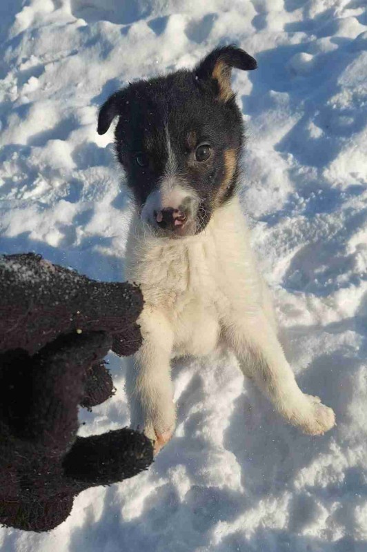 Это Бим. Его с братом перед морозами выбросили в СНТ. Братику уже повезло найти семью. А Бим до сих пор ждет. Ему 3 месяца. Бежит и встречает нас,когда идем его кормить. Стойко прятался в самые морозы в надежде найти своего хозяина. Он станет верным другом тебе!