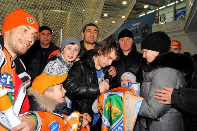 Чуть позже была автографсессия, наши болельщики фотографировались с хоккеистами любимой команды, а те, в свою очередь, благодарили нас за чумовую поддержку.