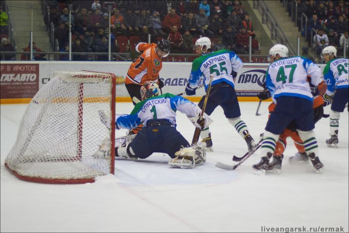 Начало второго периода обернулось для "Ермака" шоковой терапией - одного за другим удаляют наших игроков. А я, почему-то, как раз-таки ожидал подобную картину. Надо же как-то "Торосу" ангарчан догнать? Не получается в равных составах, не выходит пять-на-четыре - следует попробовать против троих. Главный арбитр получил условный сигнал (три воздушных поцелуя Степанова), и вот два хоккеиста "Ермака" на скамейке штрафников. Шучу. Но как бы то ни было, нашим пришлось почти две минуты играть втроем против пятерых озверевших нефтекамцев! Как только не пытались пробить Гаврюшу эти гадкие торосята - выстоял!