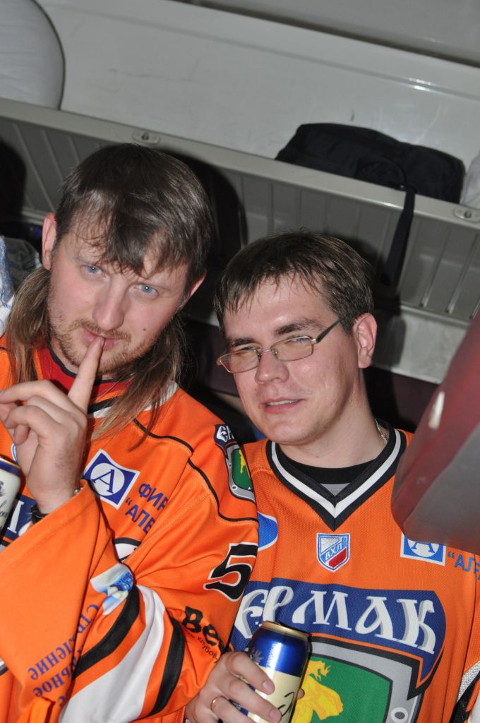 Объективно, в первом периоде, этот стадион зрителей нас порой перекрикивал. И не мудрено: начало матча прошло в каком-то сумбуре, много неточных передач «Ермака» во всех зонах, как средней, соперника, так и своей. Такая разорванная игра нашей команды привела к тому, что уже к 14 минуте первого периода мы горели 2:0! Первый гол забил Сёмин, и естественно, что стадион просто взорвался овациями! Но на какие-то 15-20 секунд, потом снова настало наше время – время оранжевого сектора. Во второй шайбе в ворота «Ермака» также поучаствовал знаменитый красноярский форвард – нас снова перекричали на полминуты, не больше. Затем все пошло под диктовку наших барабанов и кричалок! Мы верили в команду, мы знали, что ребята будут биться до конца – первый период не показатель! И уже к 17 минуте, с передачи Юшкова, Смирнов принес первую баночку в ворота земляков, вселив уверенность в наши сердца, что это не последняя наша радость в этом матче!