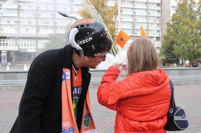В планах на 2 октября у нас была увеселительная прогулка по Красноярску, часть которой мне предполагалось пропустить - было необходимо выкупить билеты в кассах «Арены Сокол», а также собрать всю нашу оранжевую братию перед стадионом за полтора часа до матча. Но мои однополчане решили меня не бросать, поэтому мы все время были вместе. Это было нечто!
