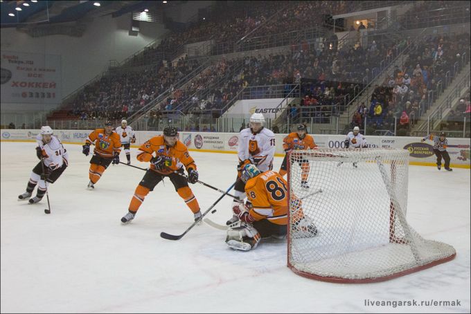 Состоялся очередной матч ангарского "Ермака". Отзвучал гимн и первое вбрасывание остается за гостями. Но не тут-то было, первая же смена ударного звена зажигает фонарь за воротами гостей. Коньков, запутав своего визави у лицевого борта, отбрасывает шайбу на Максима Юшкова. Трибуны визжат от восторга, а голеодор делает вид, что не слышит их.