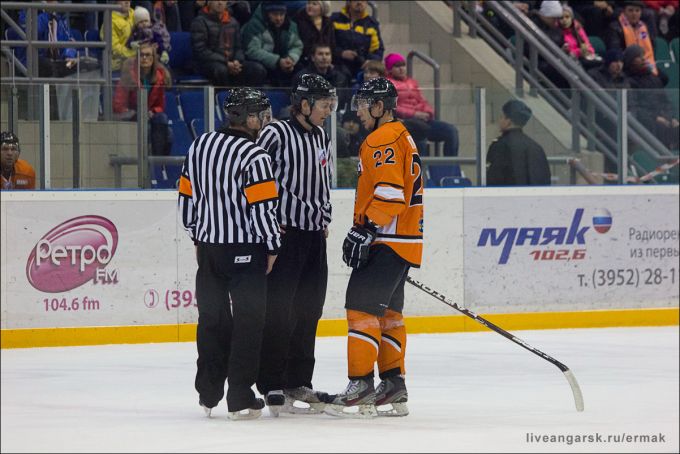 Второй период начался. Оставалось играть "Ермаку" 10 минут и 48 секунд - в этот момент Бардин записывает себе балл в показатели "Победная шайба". И с этого момента что-то пошло не так - шайба не держалась на крюках, перестали проходить длинные передачи, из "плечей вырастали локти и били соперников". К сожалению в третьем периоде дело пошло еще хуже. На 45 минуте Рогов пытаясь исправить ошибку при передаче слегка приобнимает оппонента. Но не тут-то было - наш разгневанный и бурлящий ревностью арбитр скрещивает руки над головой. Все подумали, что он просто изображает из себя лося (так как нарушения не видел никто), но нет Отелло назначает буллит. Простой русский парень Егор Рахимуллин не смог переиграть хитрого и коварного казаха Иванова. Честь и хвала восточной выдержке. А игра тем временем разваливалась все больше: короткий пас ложился на крюки соперника, скорость движения падала, дриблинг и тот уже не тот. И воцарился ХАОС. Воспользовавшись этим все тот же Рахимуллин мстит Иванову на 51 минуте. Но главная месть была еще впереди. Василий Сыса который по привычке чудил на ангарском стадионе, хотел напомнить своим бывшим болельщикам о себе. Но лучше ничего не смог придумать чем просто удалится. Тут встрепенулся еще один экс-ангарчанин, а нынче "заслуженный бегун по клубам ВХЛ" Сергей Тополь. Не смотря на свою деревянную фамилию он убежал от наших игроков и показал: Иванову где раки зимуют, а зрителям зачем-то указательный палец ( зрители обрадовались и тоже показали ему, но только средний палец). А вот и главная месть сезона - оскорбленный болельщиками господин Кравченко, десять минут держал всех на ногах. Он изучал видеоповтор такого неоднозначного взятия ворот. И в профиль на экране на Тополя посмотрит и сверху изучит, но больше его волновал вид со спины. Рассмотрев очевидную шайбу, этот чудак-человек сгоняет уже попрощавшиеся друг с другом команды к центральной точке. Шесть секунд и богатырь повержен. Медведь разорвал сибирского первопроходца, кто в этом виноват решать Вам.