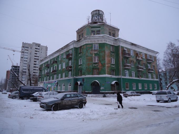 Пройдя около 2 километров я наконец-то дошел до "Дома грузчика". Это здание было построено в 1920-50е гг. для рабочих порта Пермь-I. Наибольшую известность получил как "Дом Коляна", в котором проживал главный герой из сериала "Реальные Пацаны". В этом же доме расположен и стриптиз-клуб "Красная страсть", который упоминается в нескольких сериях.