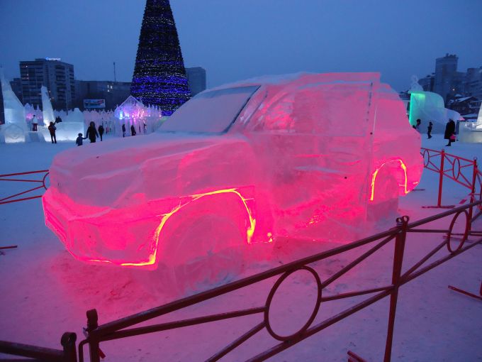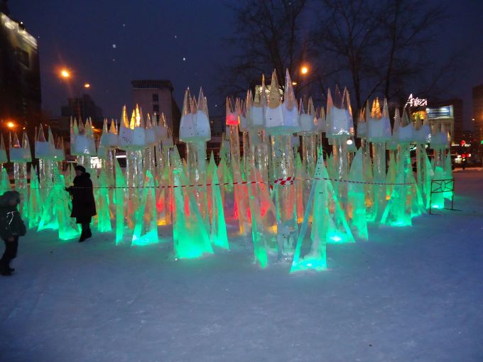 В ледяном городке было еще множество различных скульптур сделанных из льда и снега.