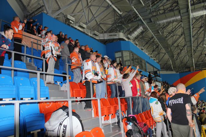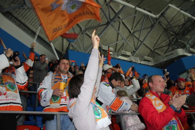Разместившись на контрольной высоте и вкратце отметив успешную высадку, коллегиально приняли решение вероломно обозначить свое присутствие ударив короткими очередями по арене "Север" в ходе матча "Сокол"-"Казцинк-Торпедо". Сказано, сделано. Немного отдохнув, облачились в боевые бело-оранжевые доспехи и окольным путем, через какие-то газоны выдвинулись на "Север".