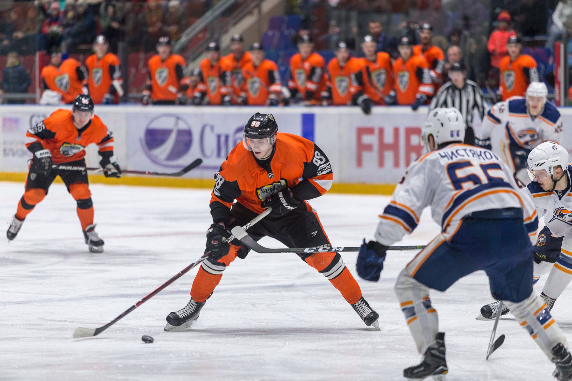 - Мы сегодня открывали плей-офф в Высшей хоккейной лиге. Ну, что сказать. Настоящий матч плей-офф, боевой, от первой до последней секунды держал в напряжении и тренеров, и игроков, и зрителей. Я думаю, такая игра зрителям нравится. Ради таких игр мы весь чемпионат и играем. Что касается самой игры, то немножечко сковано начали, пропустили в первом периоде, потом выровняли игру. Второй и третий период мы больше шайбой владели, моментов создавали, но, к сожалению, пропустили гол из-за ошибки нашего защитника. Серия только начинается, самое интересное впереди.