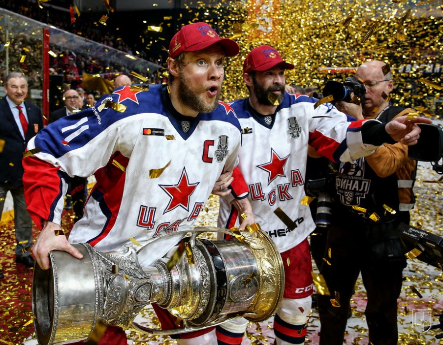 ( и это ещё не всё )Столичный ЦСКА победил в 4 матче финала омский Авангард и всухую выиграл серию, завоевав Кубок Гагарина. В составе армейцев победу праздновал и наш прославленный земляк Александр Попов, чемпион мира 2012 года, 18 сезонов до этого отыгравший именно за омский Авангард. В сегодняшнем матче Александр стал ассистентом второго гола ЦСКА, который помог москвичам перевести игру в овертайм.