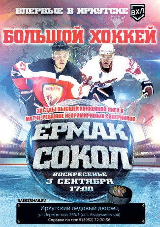 3 сентября в Ледовом дворце Иркутска впервые сыграют звезды Высшей хоккейной лиги. На лед выйдут ангарский «Ермак» и красноярский «Сокол». Начало в 17.00.