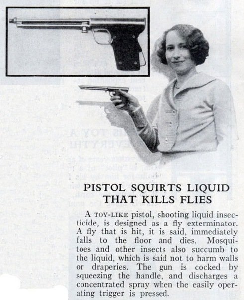 Убийца мух. Пистолет прыскает концентрированной струёй инсектицидов.