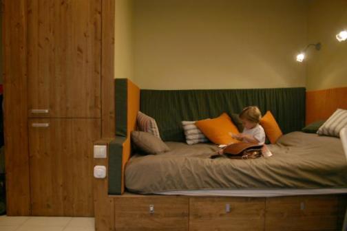 В этом случае можно сделать несколько выдвигаемых из подиума ящиков для хранения различных вещей (игрушек, белья и пр).
