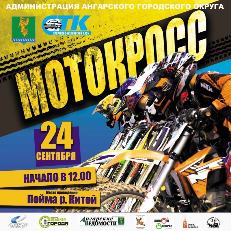 Традиционные соревнования по мотокроссу пройдут в пойме реки Китой. Начало тренировочных заездов в 10:00. Начало соревнований в 12:00.