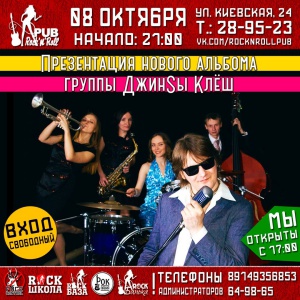 Иркутская группа «ДжинSы клёш» презентует свой новый альбом. Концерт состоится в "Rock'n'roll pub" (ул. Киевская, 24). Начало вечеринки в 21:00. Вход свободный.