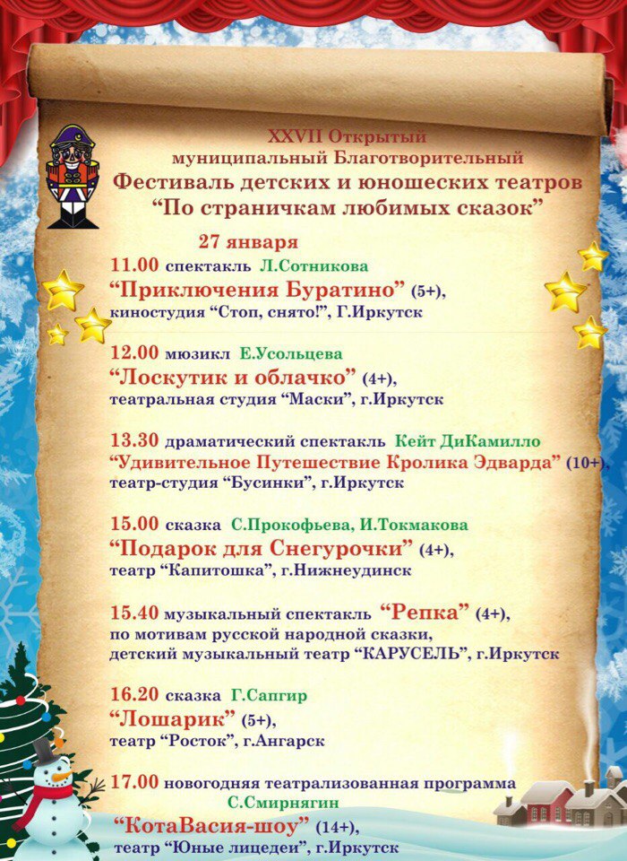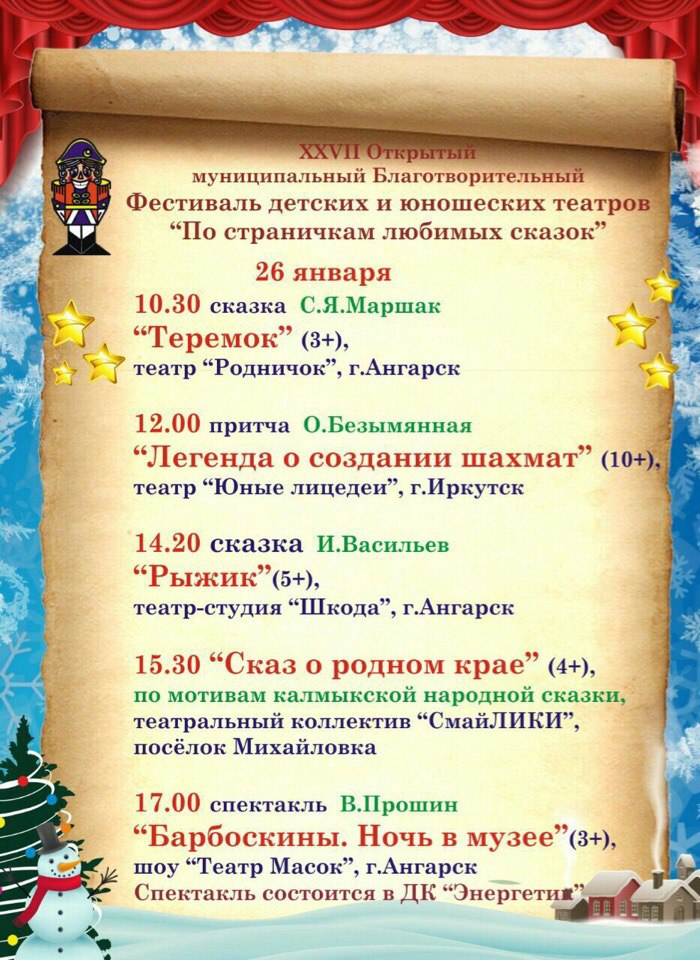 - Благотворительный фестиваль детских и юношеских театров «По страничкам любимых сказок» пройдет в Ангарске