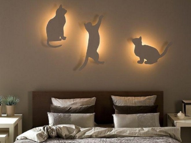 Я рекомендую сделать несколько разных фигур кошек. Во-первых, для истинного кошатника усатых питомцев много не бывает. А во-вторых, так в спальне будет больше света.