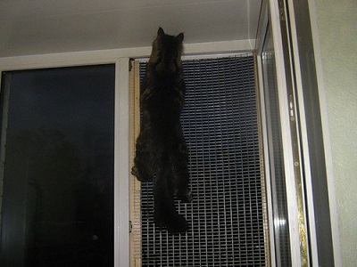 Некоторые блокираторы и ограничители тоже вариант, но только если они крепко фиксированы. Кошки – очень умелое и умное животное, они легко могут открывать защелки. При заказе антимоскитных сеток на фирмах можно заказать дополнительные металлические крепления.