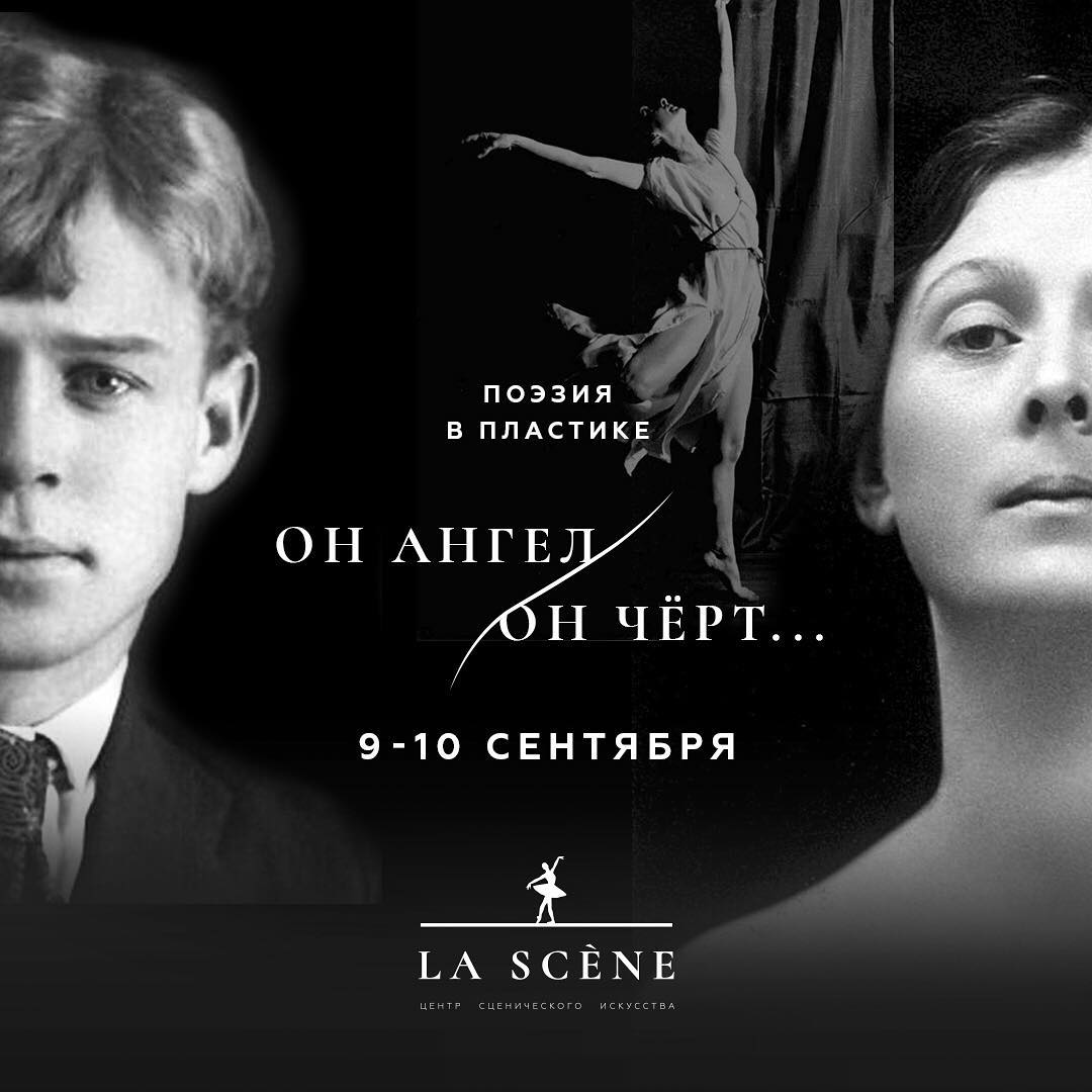 Центр сценического искусства «La Scène» приглашает 9 и 10 сентября в 18:00 на спектакль «Он ангел. Он чёрт» о жизни Сергея Есенина и Айседоры Дункан. Справки и бронирование билетов по тел.: 676-999, адрес.: ул. Коммунаров, 16