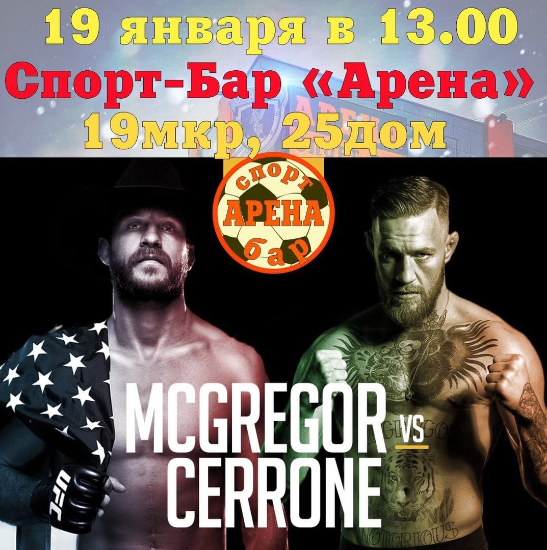 Спорт-Бар «Арена» приглашает на прямую трансляцию Ufc-246 из Лас-Вегаса. Адрес: 19 мкр, 25 дом. Бронирование трансляций и аренды зала по тел. 8 924 716-66-66.