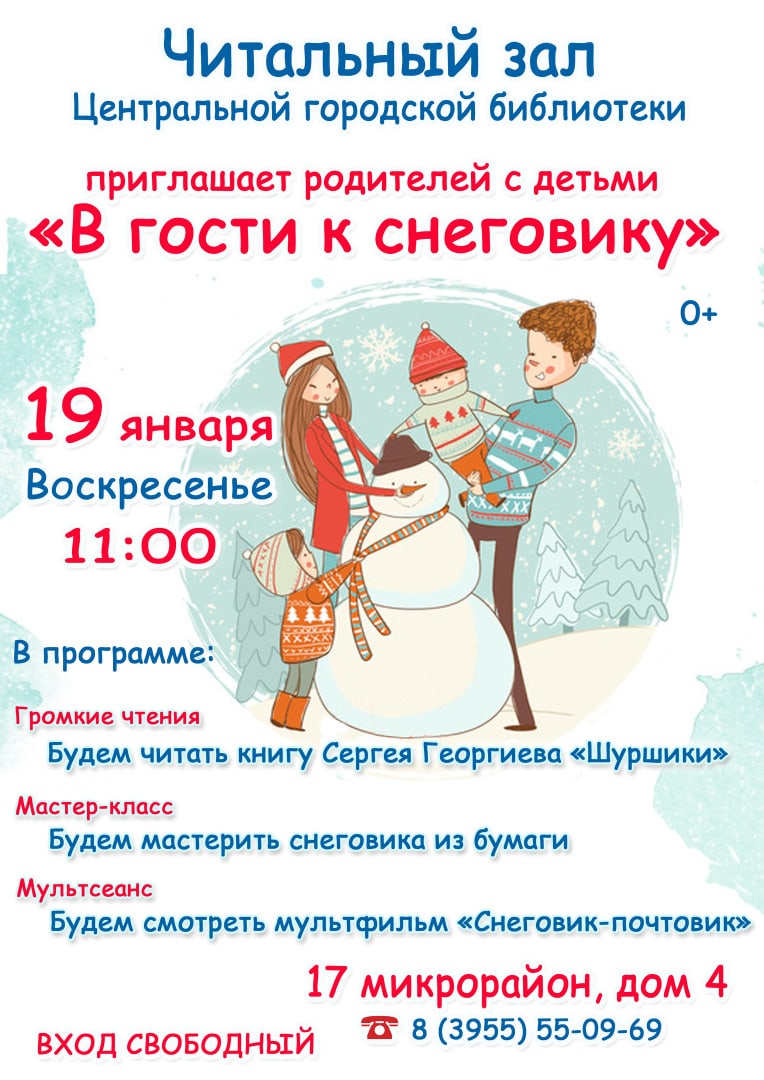 В эти выходные ангарчан ждут: выставка современных роботов, святочные гадания, "тёплый" фестиваль, лекция о здоровье спины, воскресный страйкбол, новый мюзикл, открытый городской турнир по мини-футболу. А также - семейная встреча в библиотеке, детские спектакли и мастер-классы для всех желающих.