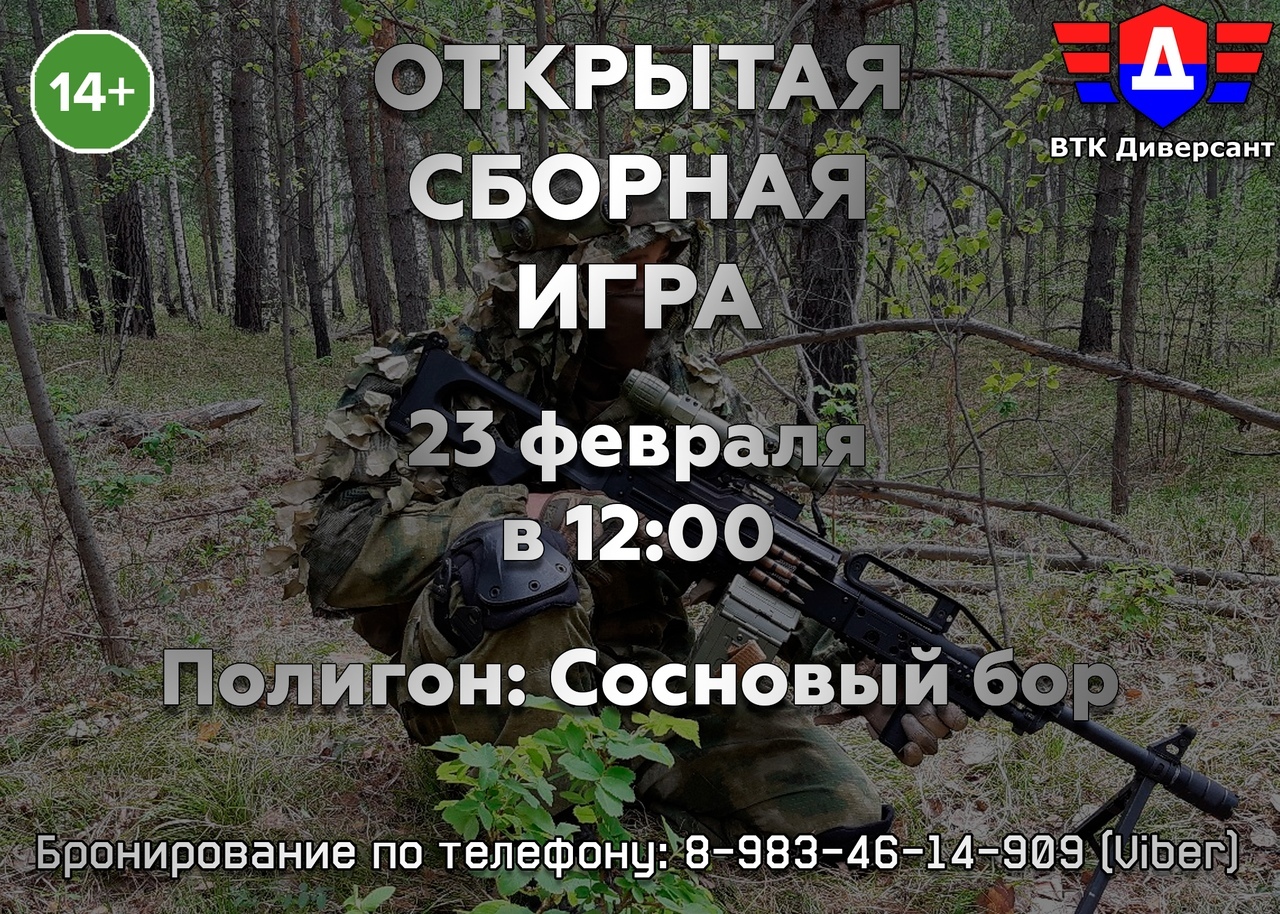 ВТК "Диверсант" приглашает принять участие в открытой военно-тактической игре на полигоне "Сосновый бор", которая пройдет 23 февраля. Начало в 12.00, подробности ЗДЕСЬ.