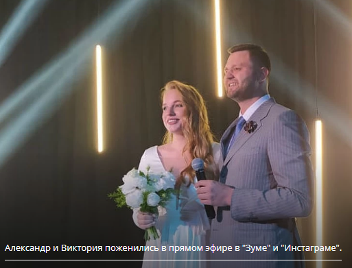 А дальше – яркая вечеринка с песнями, танцами и даже онлайн-играми. Например, гости из «Зума» регистрировались на специальном сайте и отвечали на забавные вопросы о молодоженах – кем работали, какие у них кумиры и так далее. Ну а Кудрявцевы пили шампанское и смотрели душевные видеоролики от близких. Будет, о чем рассказать детям!